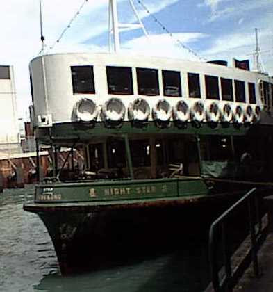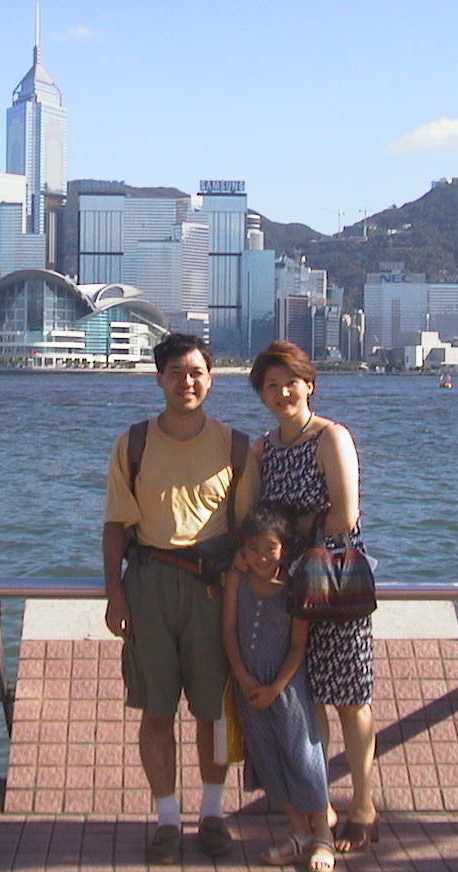 上の船で、香港島と九龍を行ったりきたりした後での記念撮影でしたので、笑っているつもりでもやや疲労感 →